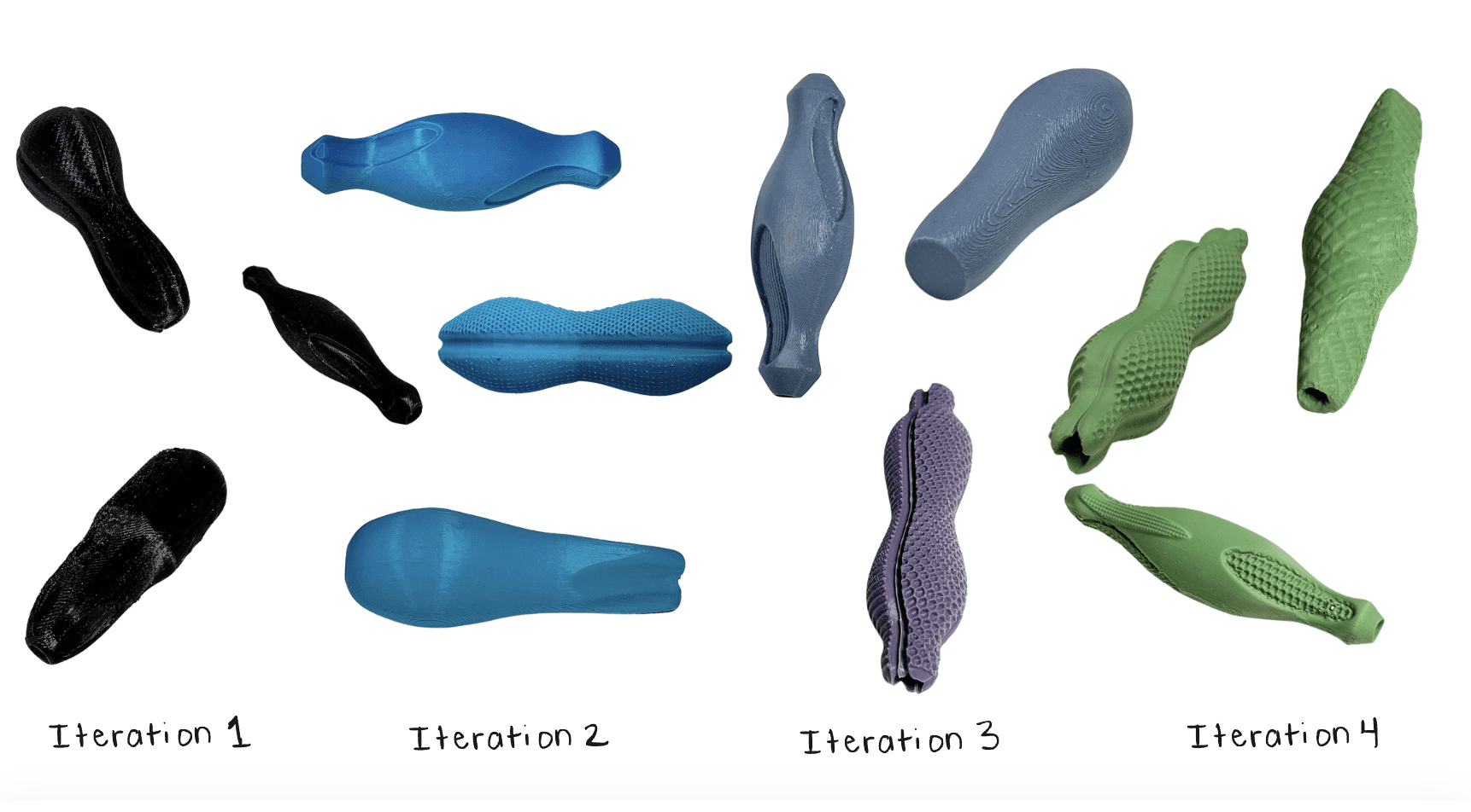 I coordinated work across subteams while contributing directly to prototyping and iteration. Through rapid prototyping and user feedback, the team progressed from exploratory concepts to mid-fidelity, CAD-modeled grip designs.