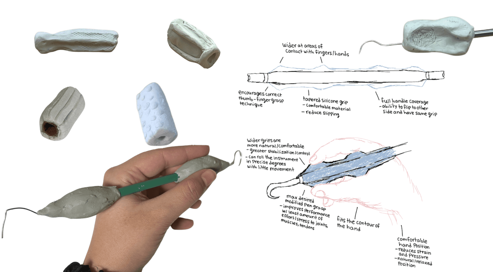 Built low-fidelity prototypes with adjustable sizing, removable grips, and textured surfaces