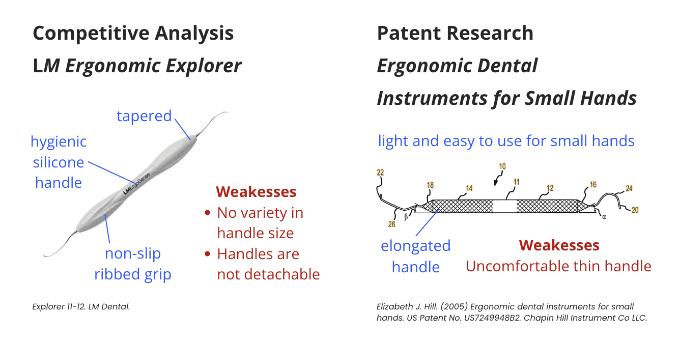The standard dental explorer was designed using outdated anthropometric assumptions that represent a narrow subset of users. As the dental workforce has diversified, this mismatch has contributed to chronic pain, musculoskeletal strain, and reduced career longevity across dentists, hygienists, and assistants. Existing tools offer little ergonomic adaptability, forcing practitioners to physically compensate during precision work.